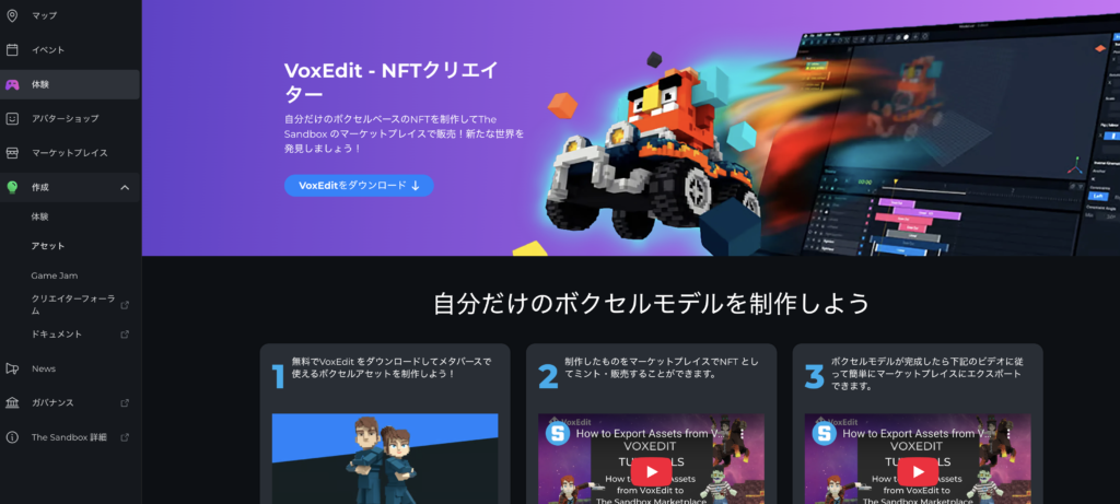 こちらは、TheSandboxというWEB3プラットフォームが提供しているサービスで、TheSandboxという