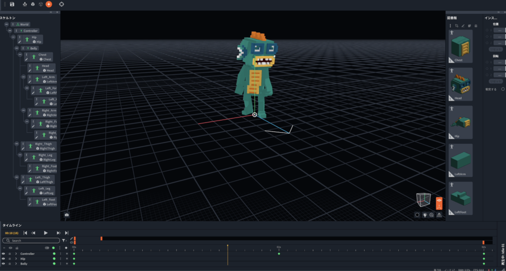 また、アニメーションも付属されているので、ポージングなども比較的簡単に設定できます。